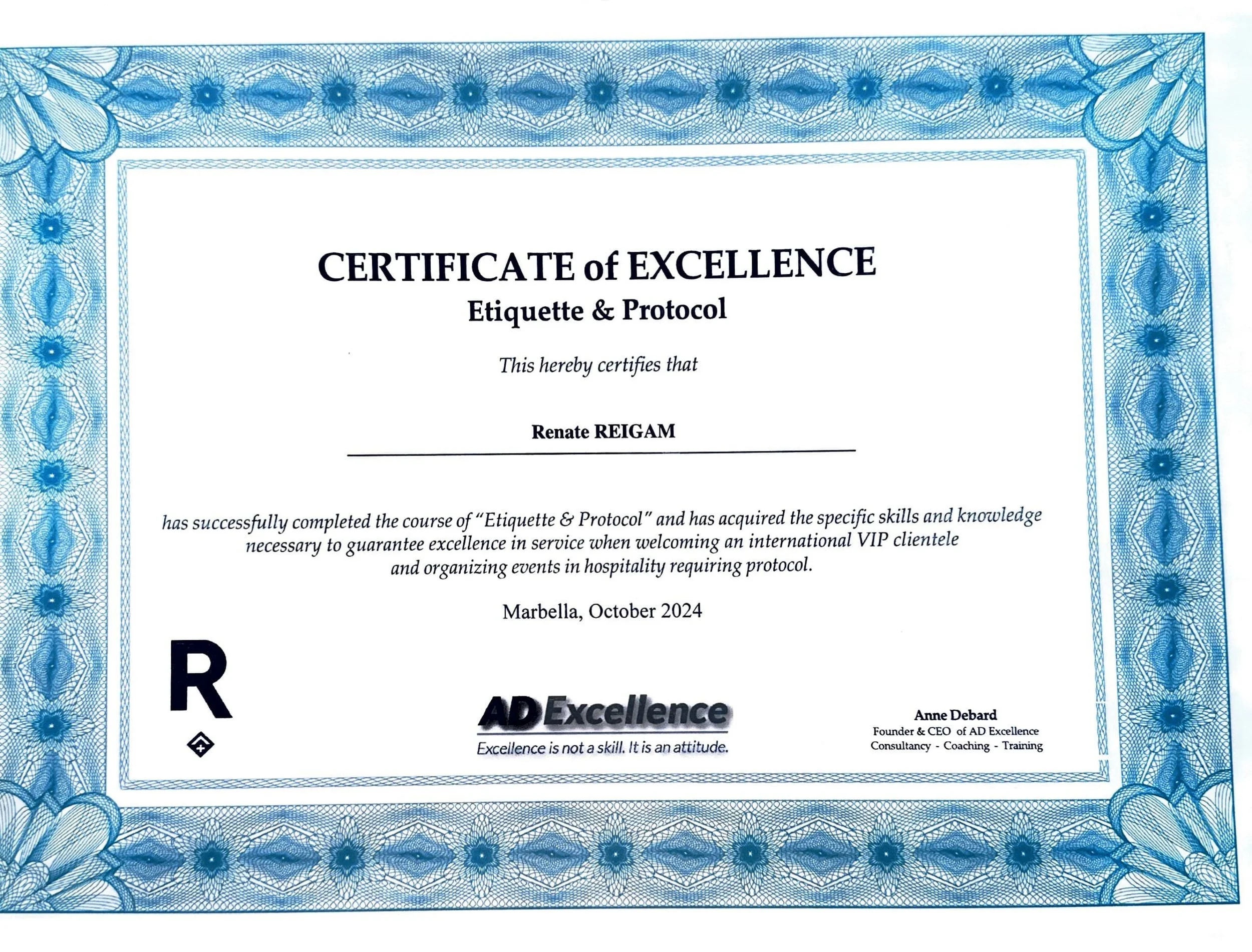 Luxury Service Standards: Trained in luxury etiquette and service excellence principles through AD Excellence: Etiquette & Protocol Certificate, ensuring consistent high-end brand representation.